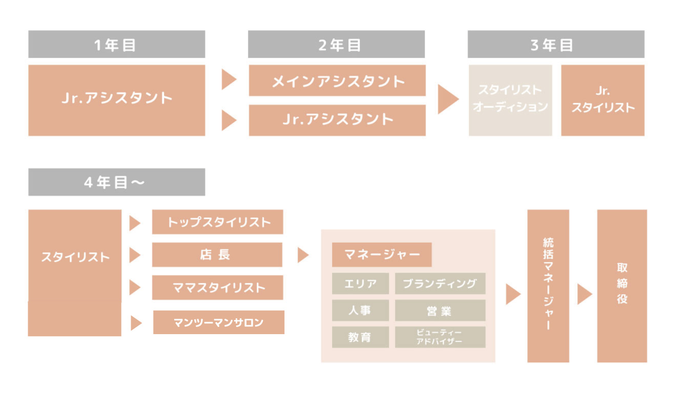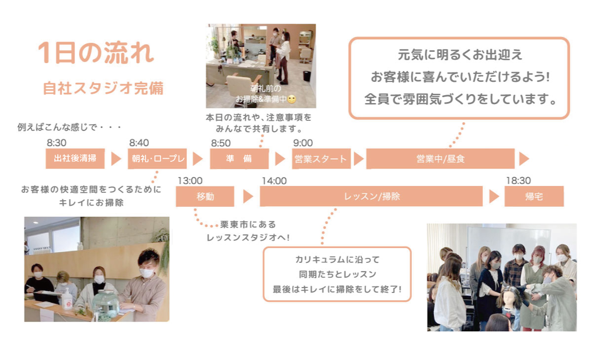 そういったチームだから、成し遂げられることが我々全パートナーの「モノ」と「ココロ」の両方の充実だと思います。美容師は給料が安く休みが少ない、、、などのイメージを業界のリーディングカンパニーとなり、そんなイメージを払いのけ、最高に充実した美容師ライフを送り続けられる豊かなチームを目指しています。